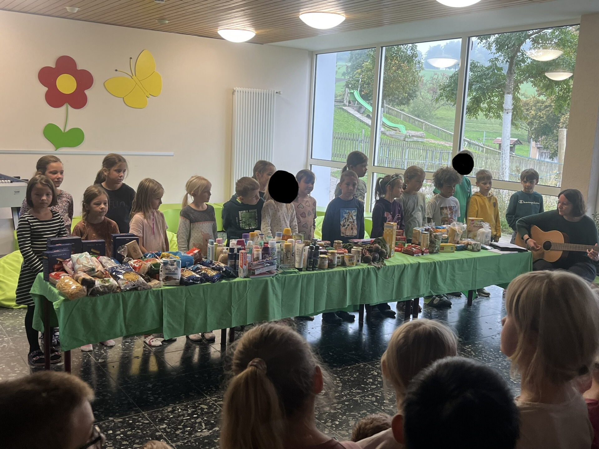 Im Blick war auch der reichlich gedeckte Gabentisch, den die Kinder im Laufe der Woche mit Lebensmitteln und Pflegeprodukten gefüllt hatten. Die Spenden wurden allesamt dem Tafelladen in Bad Urach übergeben.