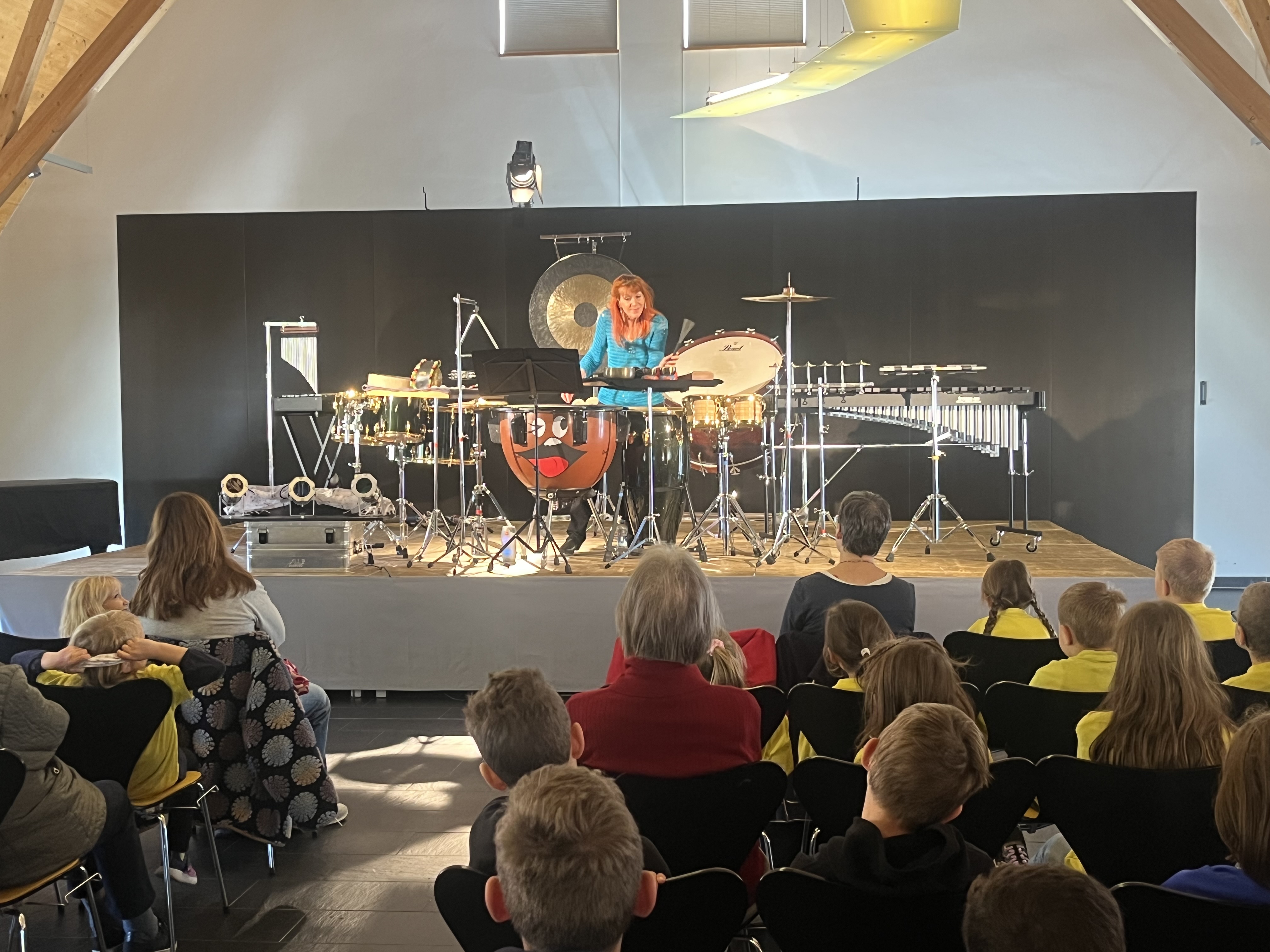 Mit viel Witz, Fantasie und musikalischem Können ließ die Schlagzeugerin Babette Haag ihre Instrumente lebendig werden - jedes mit einer eigenen Stimme und Geschichte. Die Kinder hörten gespannt zu, klatschten mit und durften am Ende sogar selbst die Instrumente ausprobieren.
